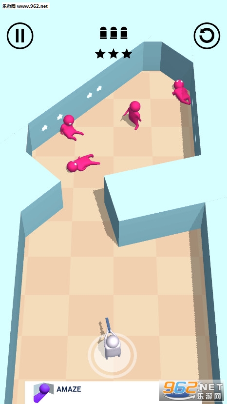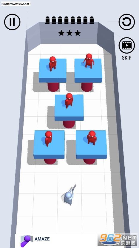 《子弹人3D游戏》是一款很有意思的射击闯关游戏,游戏采用的是很清爽明亮的橡皮泥小人风格,Q萌可爱,游戏中玩家要用手枪去射击红色的小人,你可以利用角度,环境等等来帮助你用最少的子弹击中最多的敌人,将敌人全部歼灭就可以进入下一关了。