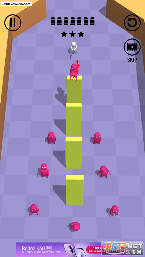 后面的关卡中还会加入蓝色的小人,他是你的队友,千万不要射击到他。