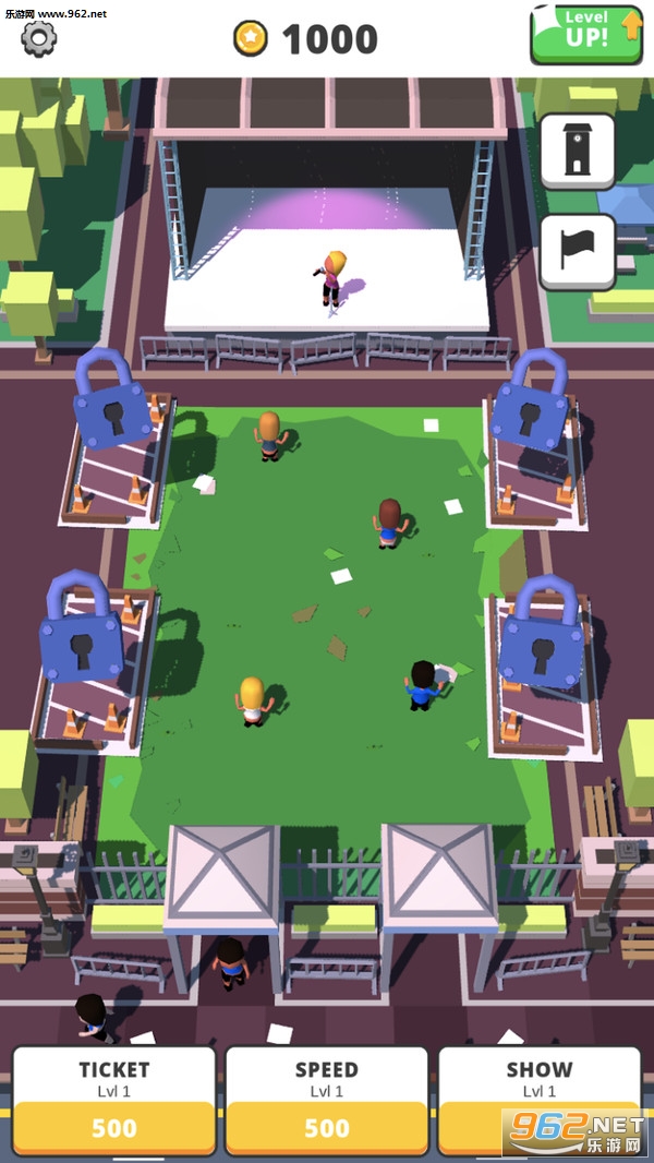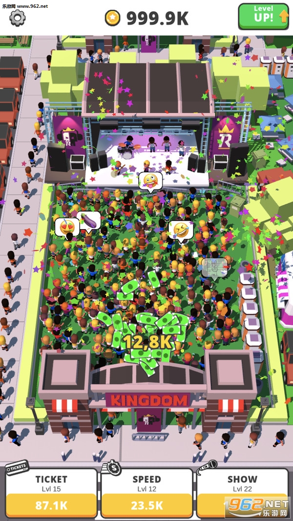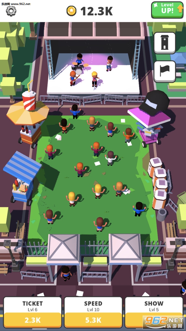融入了轻松的放置玩法模式,不需要你太多的操作,歌手可以升级,还可以扩大会场,让你的专属演唱会越办越大。
