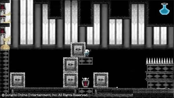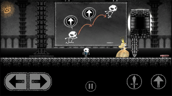 游戏巧妙结合动作操作与逻辑解谜,玩家需在骷髅”与王子”两种形态间自由切换:骷髅身形小巧,可钻入狭窄通道、触发机关;而变身为王子后,则能抱起公主同行、挥剑攻击敌人。这种双形态机制贯穿整个游戏流程,是解开谜题、推进剧情的关键。
