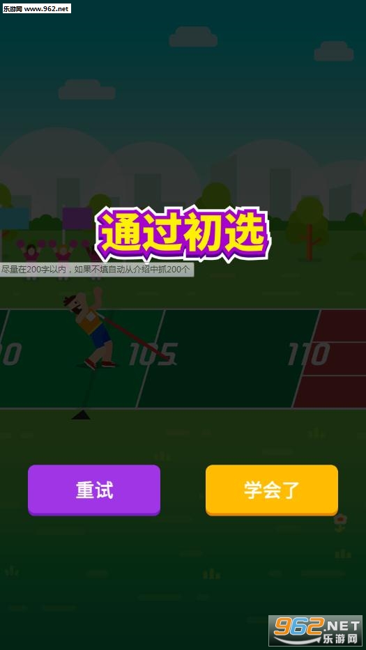 玩家可以选择跨栏,滑翔伞,标枪,短跑,三级跳等等项目挑战,你需要完成关卡挑战,只有达到每一关的评分标准才可以进入下一关解锁新项目。