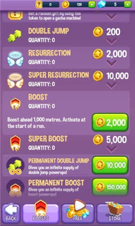 4、购买和升级负载不同的道具像子弹时间和无敌盾牌等