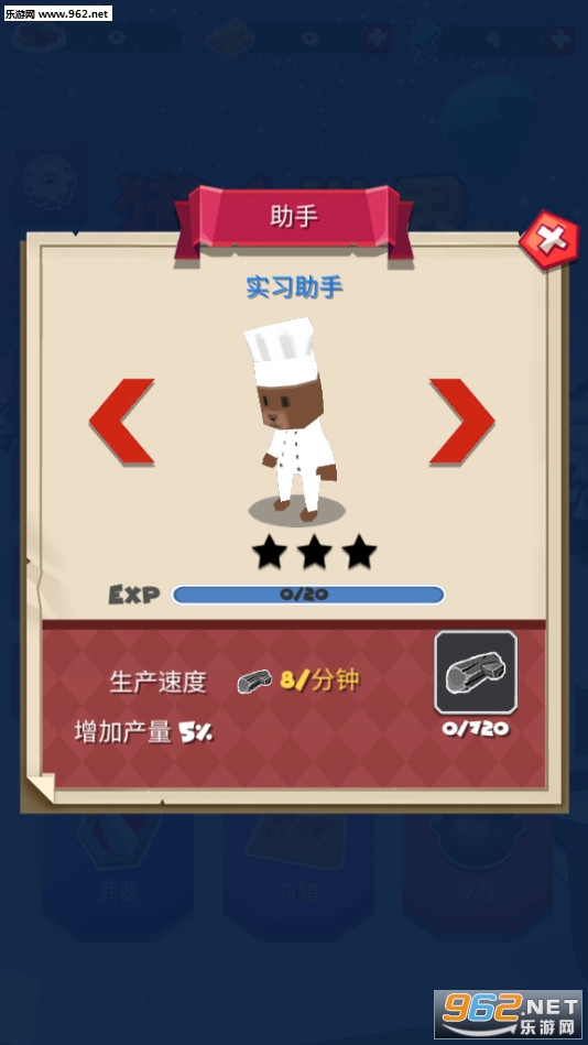 一款非常不错的狩猎模拟游戏,游戏中玩家将在不同的猎场中进行狩猎,不同的区域消耗的体力也不同,游戏的操作简单容易上手,招募助手为你进行烹饪,游戏的玩法丰富有趣,还在等什么呢?开始你的狩猎之旅吧!推荐给喜欢休闲游戏的玩家。
