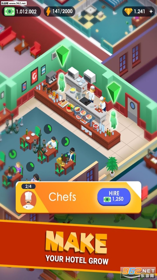 由国外知名游戏公司Codigames推出的一款放置模拟经营游戏,玩家在游戏中将从经营一家小旅馆开始,稳步前行,最终打造出属于自己的五星级度假酒店。为了追求真实性,游戏中除了常见的客房、餐厅、酒吧、停车场等常见设施外,还加入了发电室的设定。