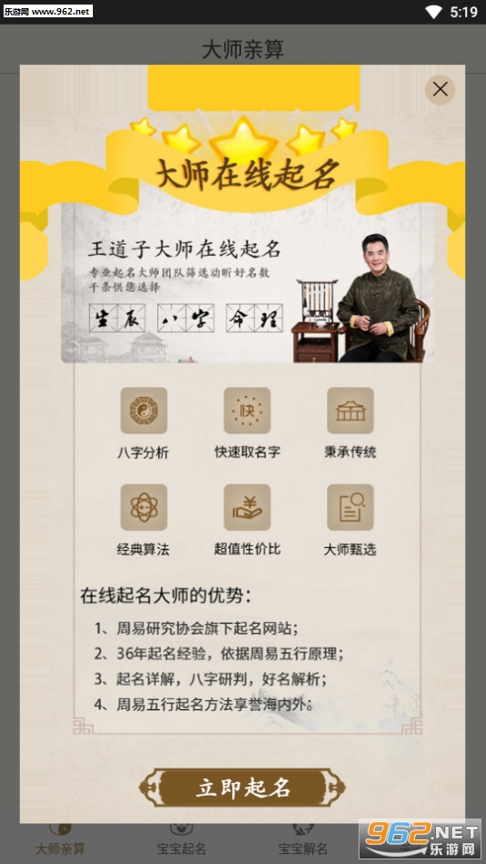 3.多样起名工具:周易起名,八字起名,五格起名,综合起名,姓名打分,重名查询,八字测算,五格查询,天降吉名,称骨论命,三世财运,小名起名。