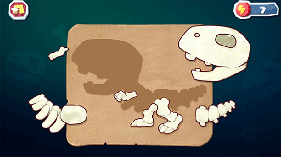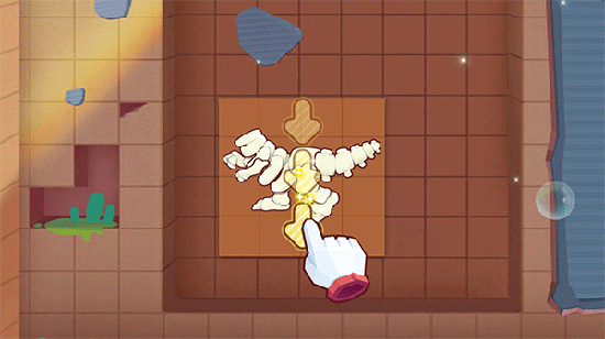 游戏以循序渐进的探索机制引导孩子逐步解锁恐龙世界。首先,玩家需在地图上仔细挖掘,寻找隐藏着恐龙化石的神秘洞穴。一旦发现目标,便会进入独特的俄罗斯方块”式拼图界面——将右侧的方块精准填补至左侧空缺区域,逐步清除遮挡恐龙图像的障碍。