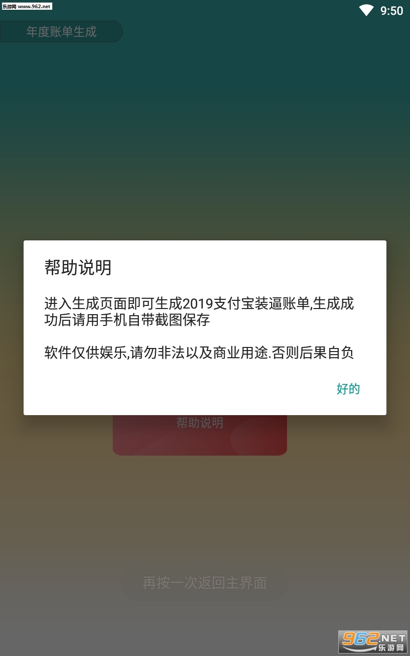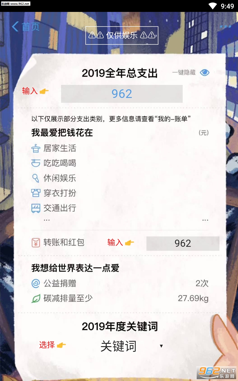 这两天支付宝年度账单出来了,很多人都在朋友圈晒,小编今天给大家带来一个账单生成的软件,老铁们可以随便的进行填写金额进行生成。