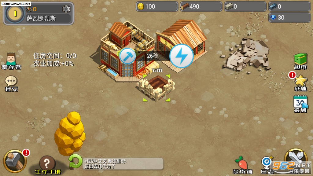 2、越来越多的幸存者投靠你,你收养了他们,让他们在你的农场里劳作,收获更多的食物;