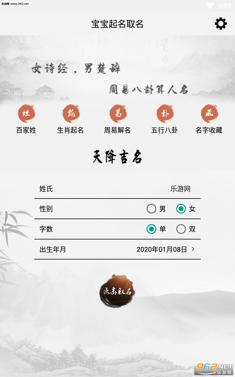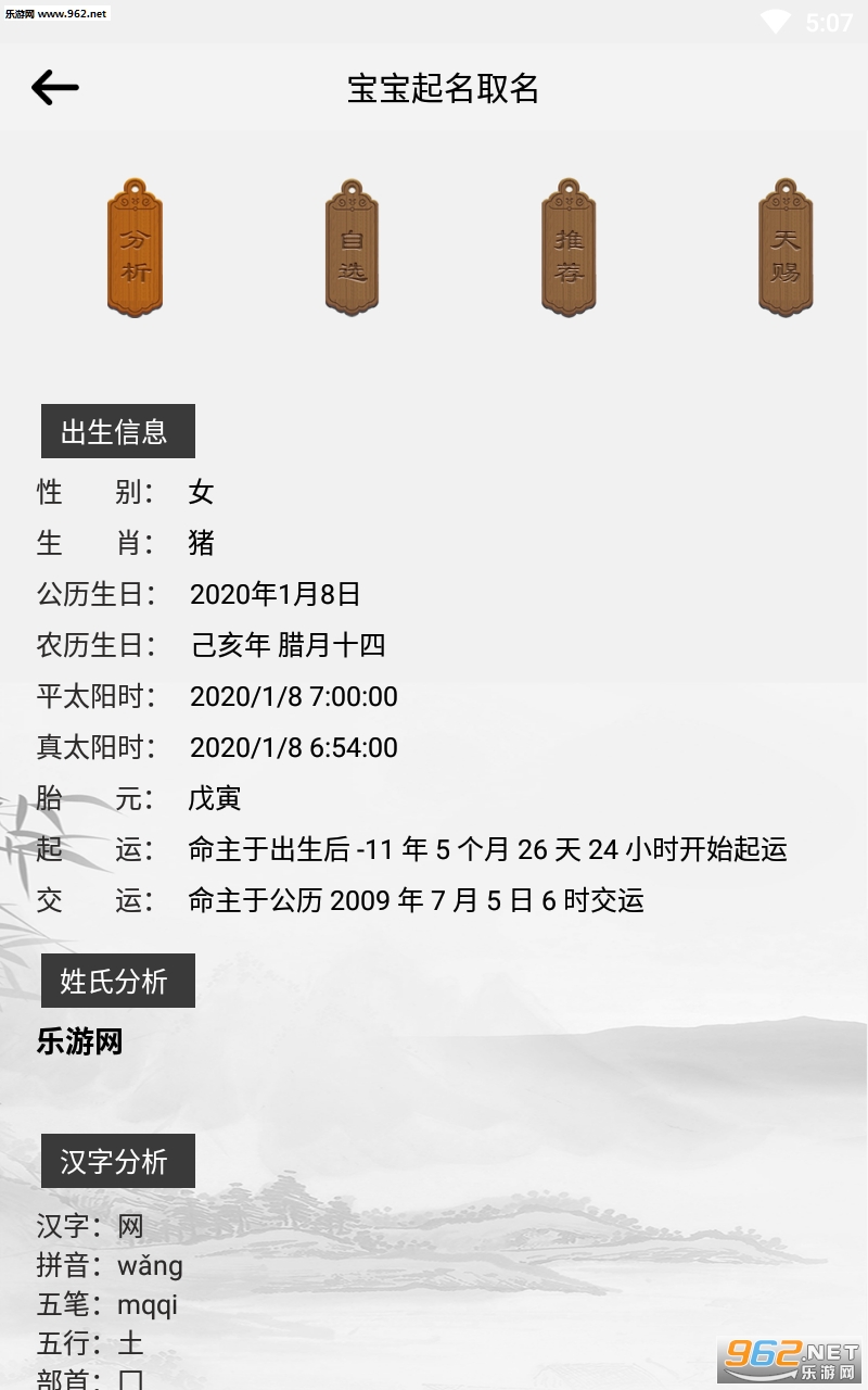 3.起名同样是根据传统姓名学知识,通过层层信息的筛选,用自选名字,推荐名字,天降吉名,三种符合用户操作的方式。总有一个好名让您一生顺利!