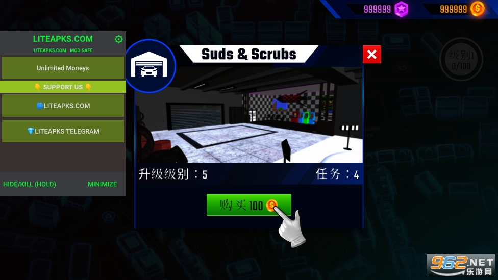 尽可能完成所有的清洁任务,获得大量的游戏奖励,提高汽车美容店的规模和水平。