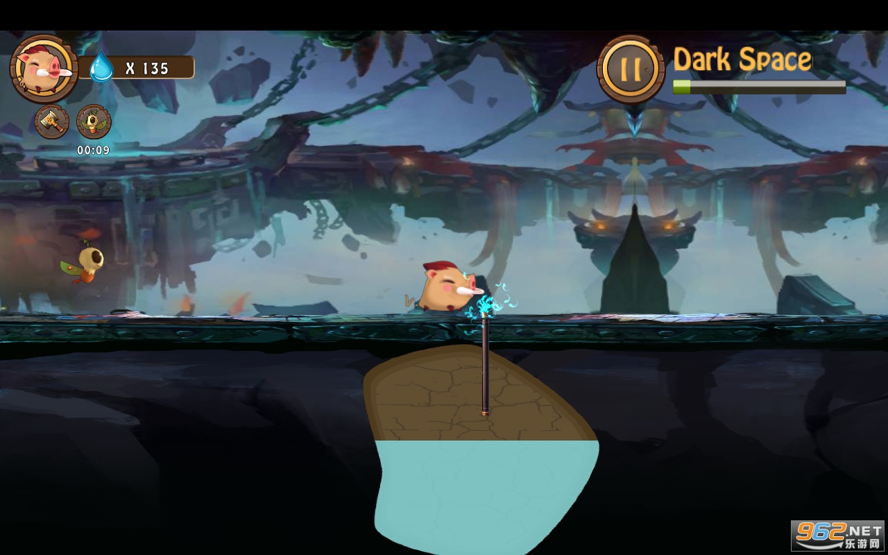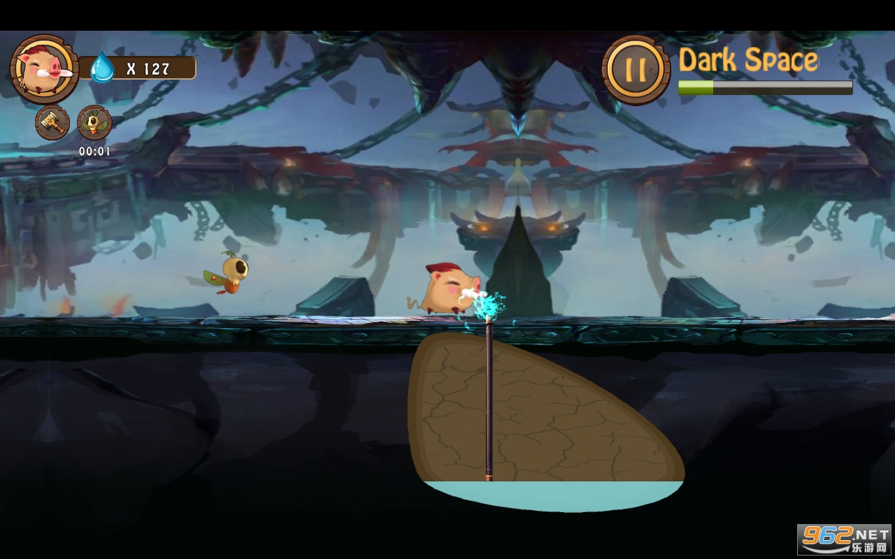 3、通过上下左右滑动屏幕来控制小猪的移动和跳跃,同时还需要在适当的时候点击屏幕使用道具。
