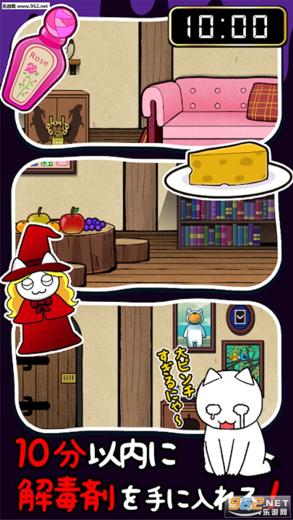 一款日系风格的逃脱生存游戏,也是逃脱游戏白猫的最新作品,可爱的小猫吃掉了毒苹果,你需要帮助它在十分钟之内解药,考验你智商的时候到了。
