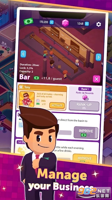您准备好经营镇上最热门的夜总会了吗?成为夜总会大亨,建立自己的帝国,赚取金钱、钻石和黄金。在这个闲置管理模拟器游戏中致富,您可以通过投资聚会和娱乐的权利来赚钱。