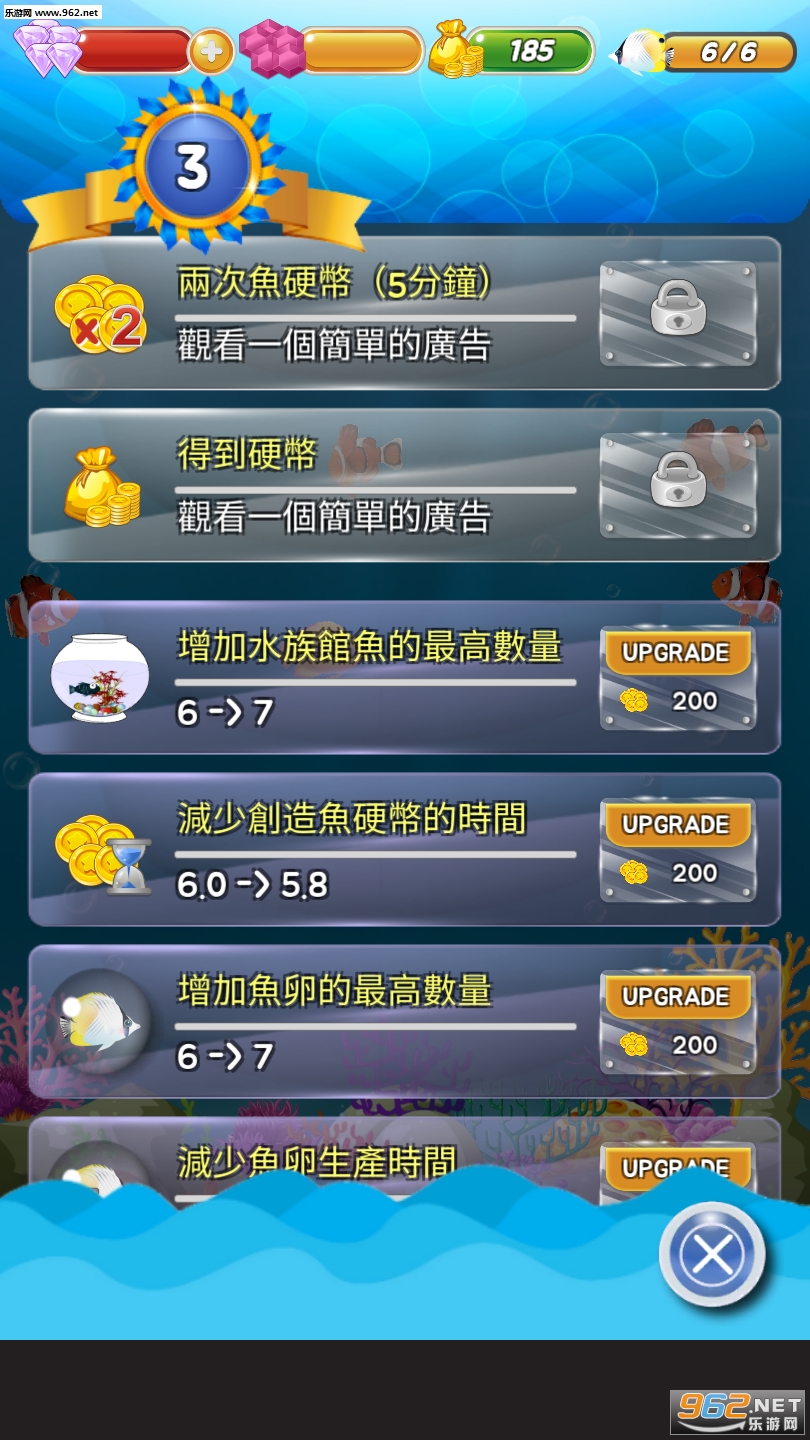 3、或者收益用来解锁水族馆的面积,这样就能够容纳更多的鱼儿在这里生活了。