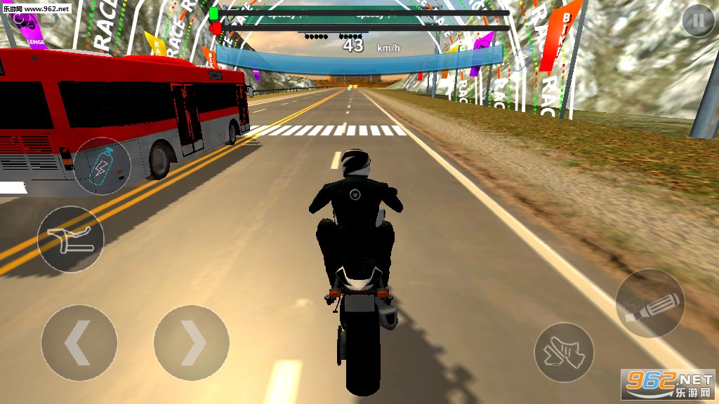 一款非常不错的模拟驾驶竞速游戏,游戏的操作简单容易上手,驾驶各种各样的摩托车来和公交进行竞速,同时道路上还有着各种各样的障碍,游戏的操作简单容易上手,多种不同的视角可以进行切换,你能够战胜公交车吗?推荐给喜欢摩托车竞速游戏的玩家。