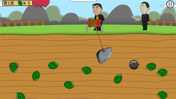 在游戏中玩家将扮演矿工一角色,只不过地下不再是黄金而是西瓜,玩家需要在爪子摆动时抓住时机将西瓜抓上来,而你抓上西瓜后在你旁边徘徊的华强会拿着砍刀将西瓜砍掉,如果你没有西瓜给华强砍的话他会砍你,所以抓紧抓西瓜吧。在游戏过程中还会有各种道具有加生命的心、炸弹、西瓜降级的道具等等。