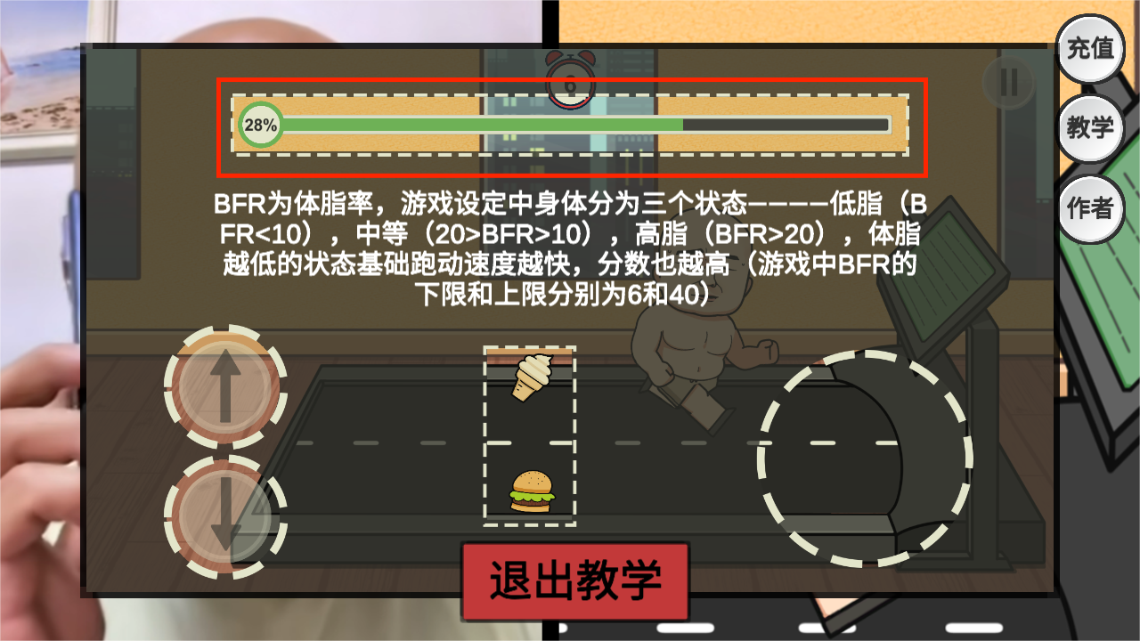 2、我们可以看到最上方的进度条代表着玩家的体脂率。