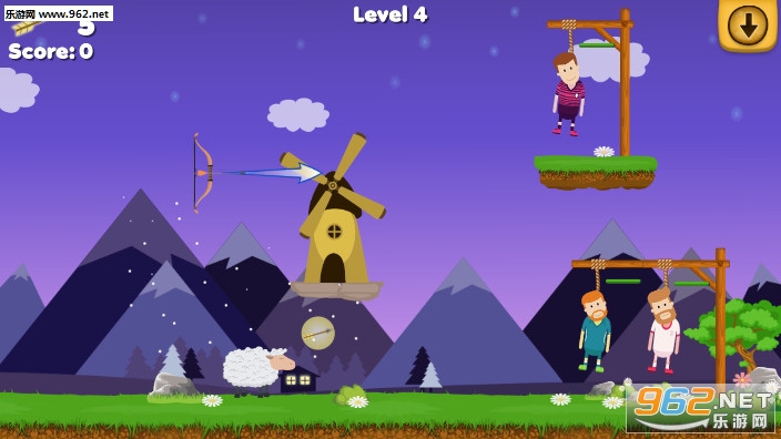 4、有150个水平与难度绳英雄玩家增加,免费的游戏,瞄准射击绳子箭头来救人。