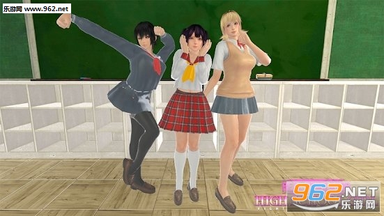 3、采用3D引擎渲染高中校园,日式校园画风,每个女生都穿着制服。