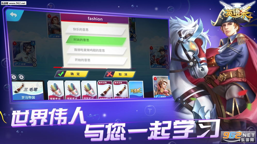 一款非常有趣的三国杀英文单词班,游戏中将单词记忆和卡牌对战相互结合,你的英语越好,在游戏中你发挥的实力就越高,同时还能够不断的巩固知识,游戏的操作简单容易上手。推荐给喜欢寓教于乐游戏的玩家。