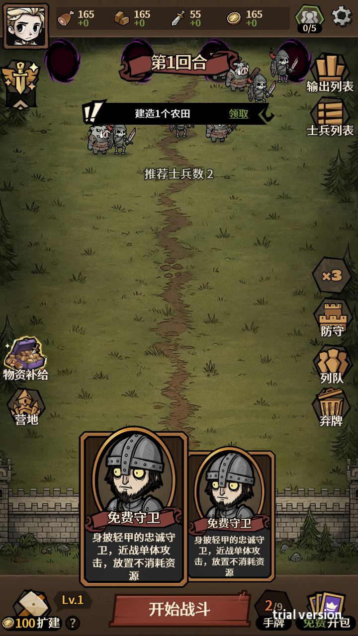 2、丰富多样的卡牌种类由你自由使用,建筑卡帮助你扩建营地,角色卡助你抵御外敌。