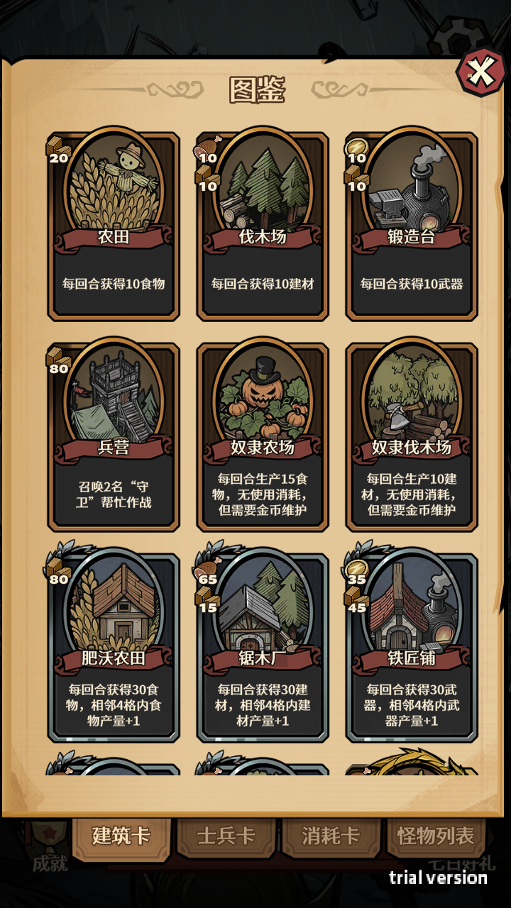 2、不知道玩法的可以先点击图鉴,仔细了解各种卡牌的用处。