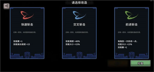 进入深渊后,每层怪物清除会获得若干技能卡(就是上面那玩意),同一种技能卡多次选择可以升级改造3次,改造后的技能会大幅增强,不要错过啦