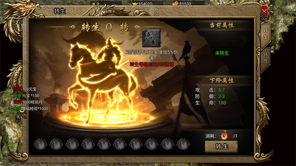 三、转生系统:突破等级压制对手 角色达到指定等级后,消耗转生材料即可完成转生,不仅大幅提升基础属性,还能获得对特定阵营的伤害压制效果(如对吴国额外+5%伤害)。建议尽早筹备材料完成首次转生,在阵营对抗中占据先发优势。