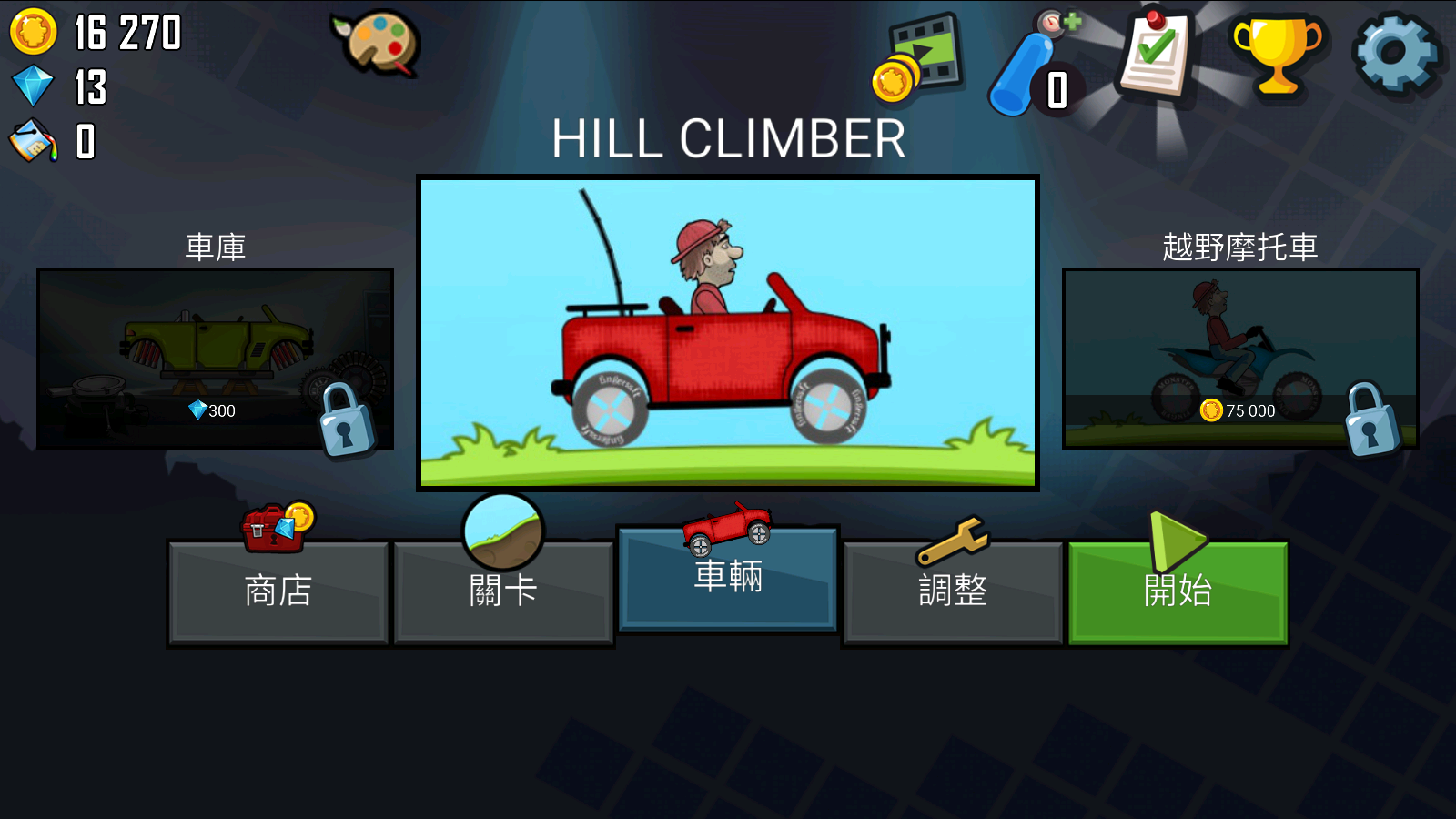 1、启动登山赛车1国际版后,点击开始即可进入关卡挑战;