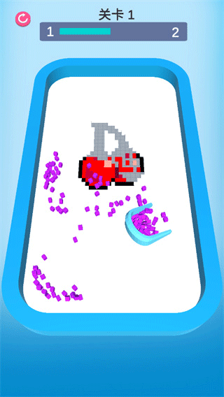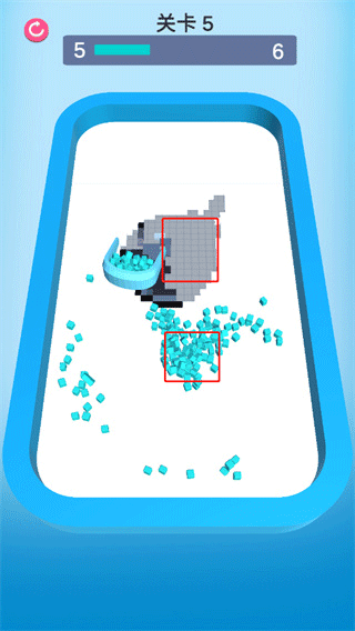 2、通过不断的点击操作,收集散落方块填补;
