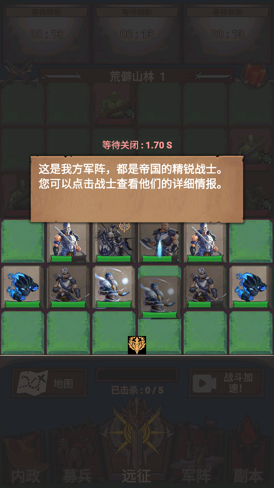 符石远征军手游有点像以前策略军团的玩法,但又增加了属于自己的更多玩法,更加耐玩和休闲,不用一直点。非常适合上班摸鱼的你!游戏新手开局可以先在图1-1抓带远攻天赋的哥布林法师,如果不够,少量天赋远攻哥布林弓手也可以