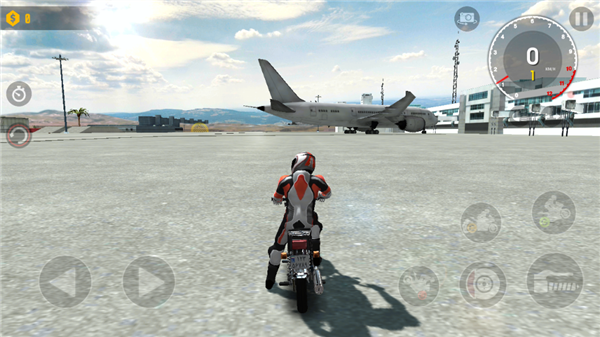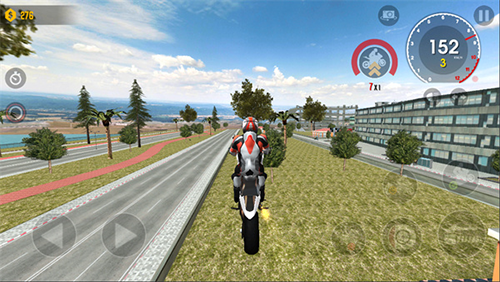 6、进入游戏后,左边控制摩托车的方向,右边则控制前进以及其他的操作;