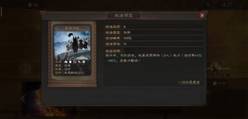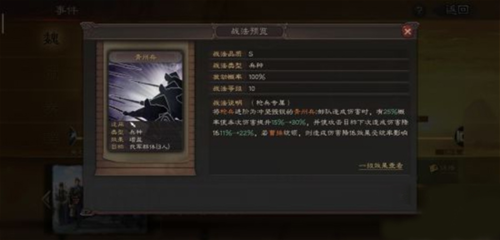 - 可拆战法【所向披靡】:准备一回合后对敌全体造成高额兵刃伤害