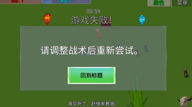 4、移动火人,发射技能消灭来袭的僵尸,一旦血量耗尽你将通关失败。