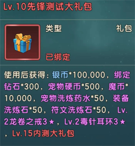 别忘了关注每隔5级发放的测试大礼包”,内含关键装备与培养资源,直接使用可大幅缩短角色养成周期,让你在起跑线上领先一步。