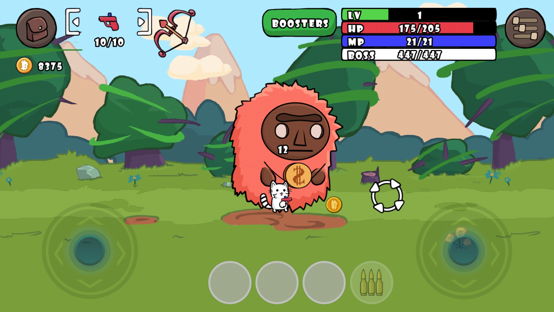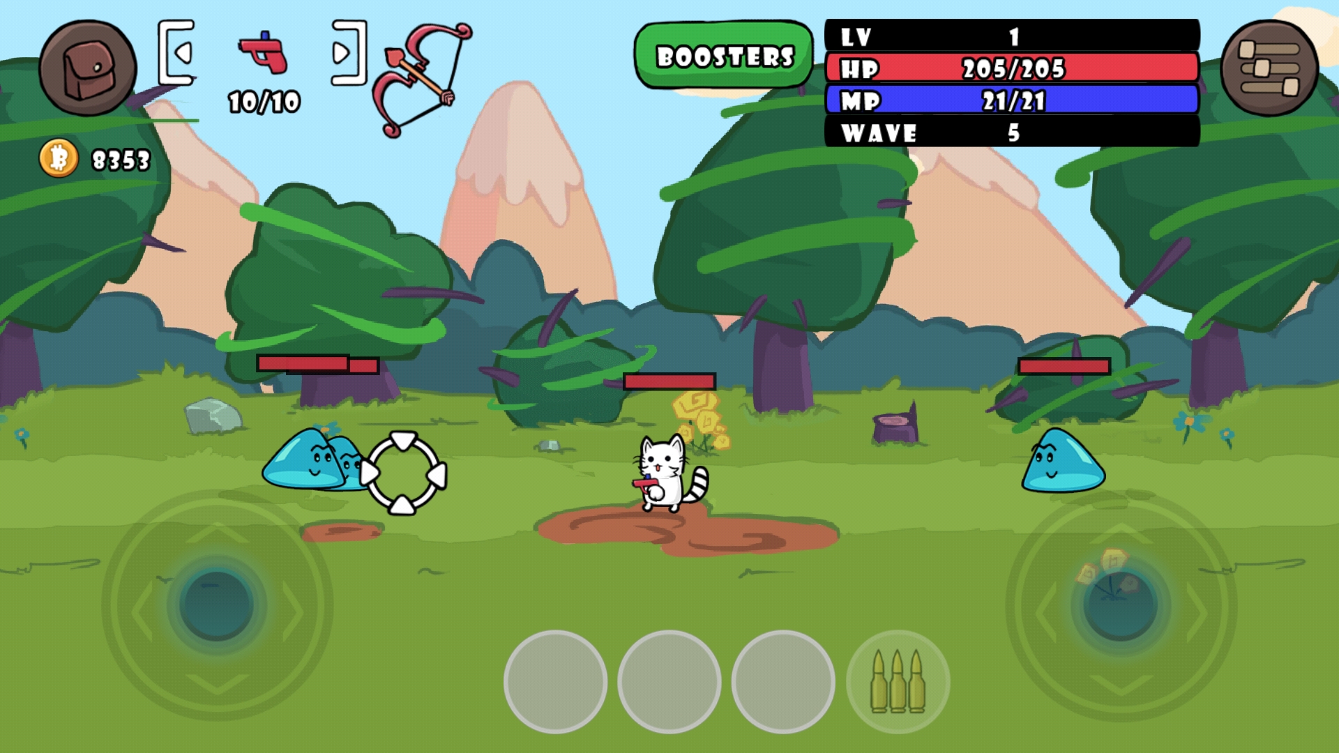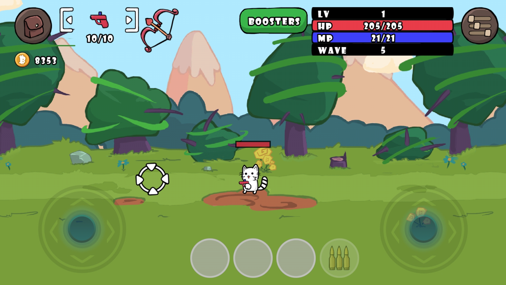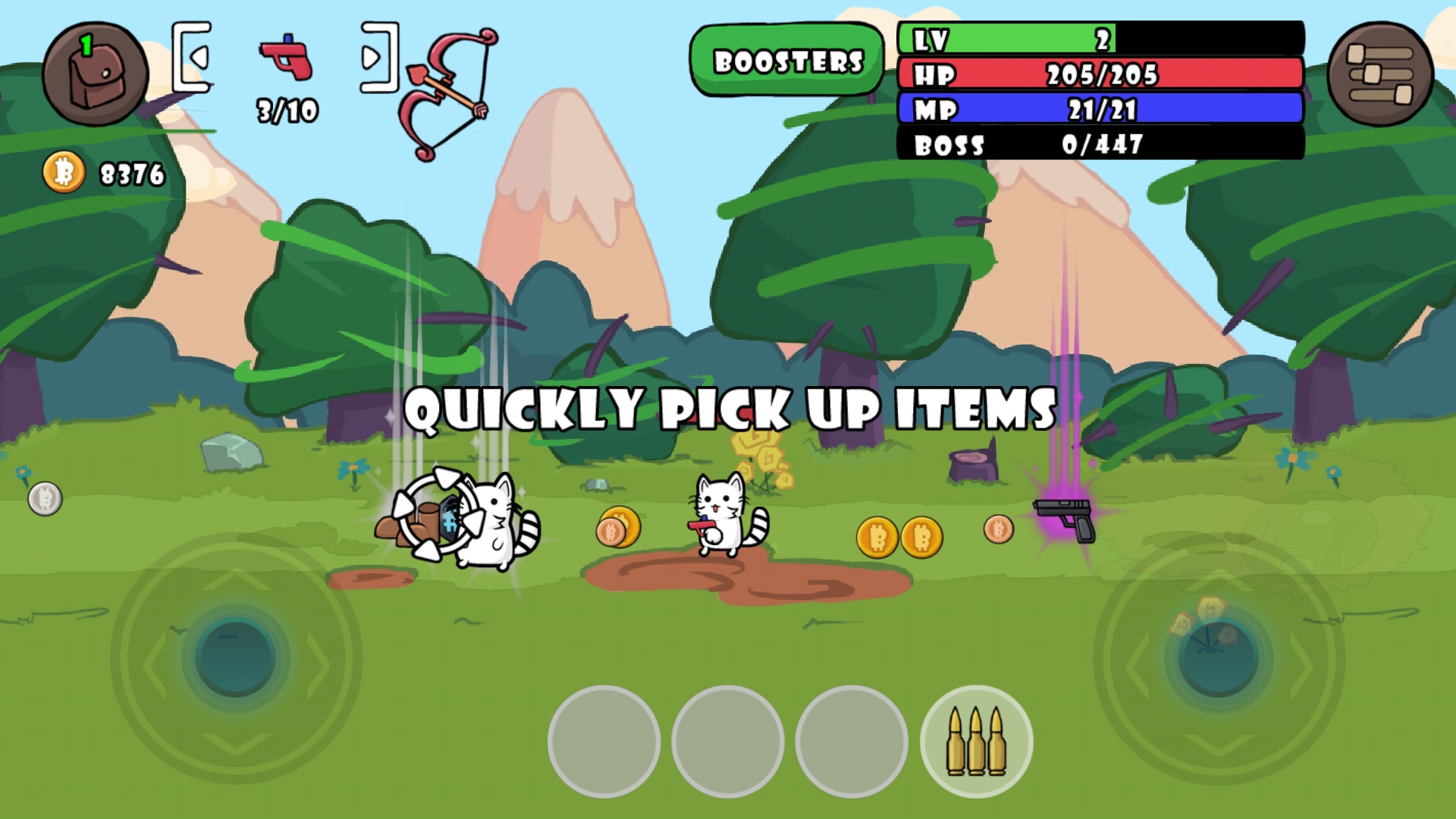 3、通过简单的轮盘操作,你可以轻松地控制猫咪角色射杀敌人,享受畅快的射击体验。