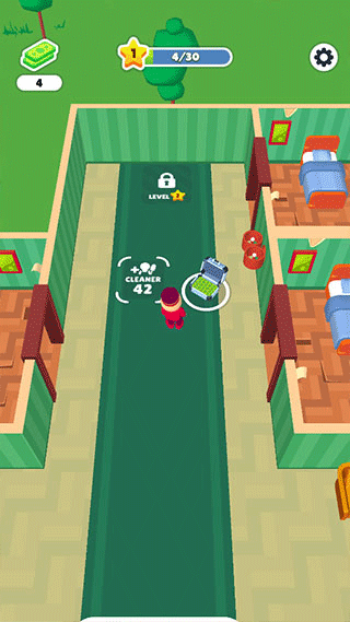 3、安排好房间给客人,他们住完后,需要及时清理打扫,才可以继续接待客人,移动小人靠近待清理的地方,就可以自动清理了。