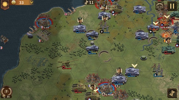 当然,除了关卡模式,将军的荣耀3国际服最新版中还有着全新的集团军模式可供玩家们游玩。在此模式中,不同的势力的集团军在地图上互相攻占,不过地图上的兵种被简化为了棋子,少了具体画面的表现,不过可以更加注重全局策略。此外,游戏内有一些简单的养成的模式,比如强化兵种、购买将领等。购买后的将领可以放置到兵种中,用来增加作战单位的战斗力。这和E社之前游戏的氪金模式类似,但不同的是将领获得之后则不需要再培养了,这对于玩家们来说还是一个不错的消息。总的来说,将军的荣耀3国际版官方版的可玩性还是非常高的,如果你想体验最真实、最热血、最刺激的二战模拟战场,那就赶紧来下载试试吧!