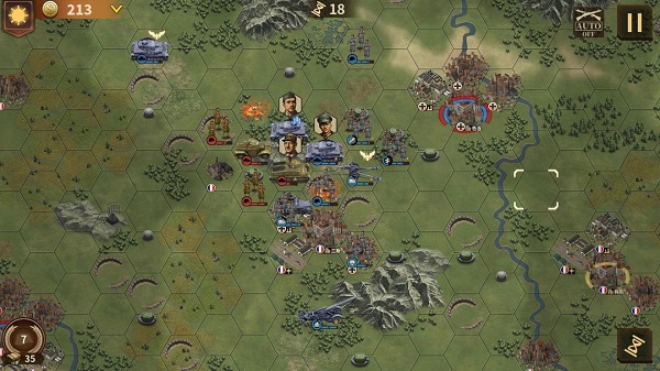 将军的荣耀3国际服是一款以二战为题材的回合制策略战棋手游,该游戏的美术比较硬派写实,和战争的题材非常搭配。玩家需要控制不同的兵种在一张大地图上排兵布阵,或推进或迂回,占领军事要塞,集中优势兵力消灭敌人的兵力,最终取得战役的胜利。但你不要以为这是件非常简单的事情,因为将军的荣耀3国际版官方版的关卡地图非常大,还有山地海洋城市等不同的地形地势,大地图被分割成许多六边形格子,兵种的移动推进都非常的自由,所有的战斗都在一张地图上展现。而在兵种方面,除了步兵,坦克等陆地兵种,战斗中还有军舰,轰炸机,空降兵等特殊兵种,战斗策略非常的立体,可以给玩家非常好的代入感!