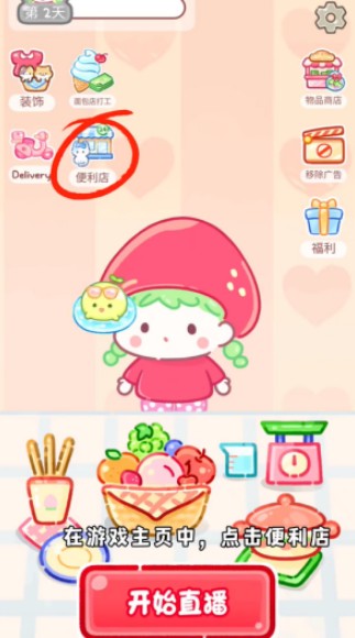 1、游戏中玩家除了自己直播制作糖葫芦外,还可以去便利店购买零食,然后进行直播。