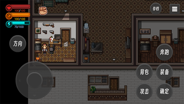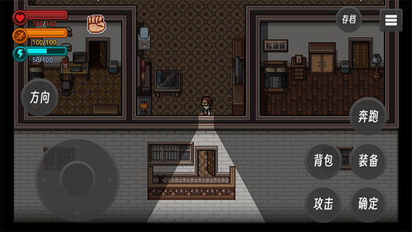 视野机制是生存关键:仅角色正前方区域可见,其余部分处于阴影遮蔽状态。这意味着潜伏的丧尸可能随时从盲区突袭,务必保持警惕。
