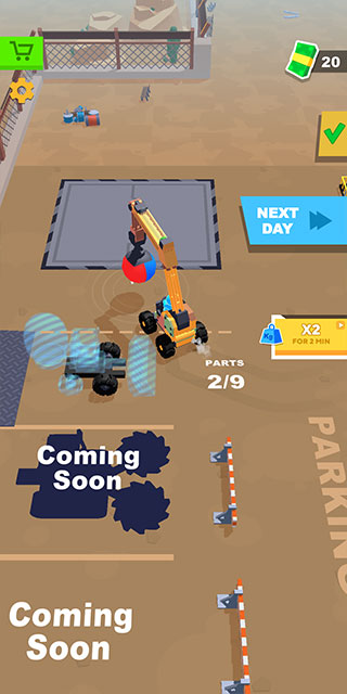 5、收集齐相应数量的零件后,回到起始点附近即可激活新的载具。每日任务结束后点击Next Day按钮可进入下一天,当然也可以先清理完当日所有垃圾再切换