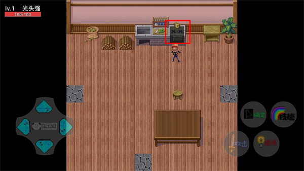 3、在厨房找到图中标注的箱子位置,并点击互动按钮;