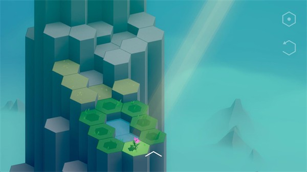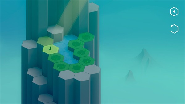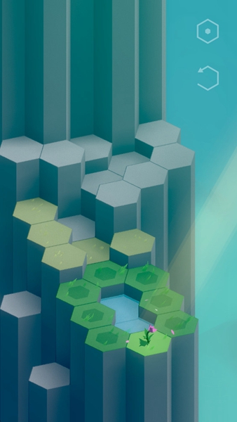 只有带有蓝色图案的石块可被移动,通过调整它们的位置,引导泉水流向干涸的草坪。当水流同时连接草坪与花朵根部时,花朵便会绽放。通关后,向上滑动屏幕即可开启下一段山间旅程,见证更多生命的复苏。