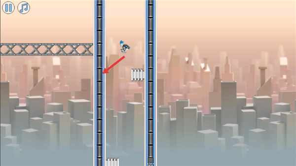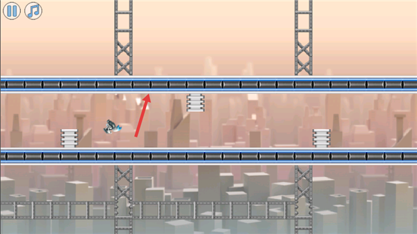 1、点击屏幕任意位置翻转重力控制角色躲避障碍物。