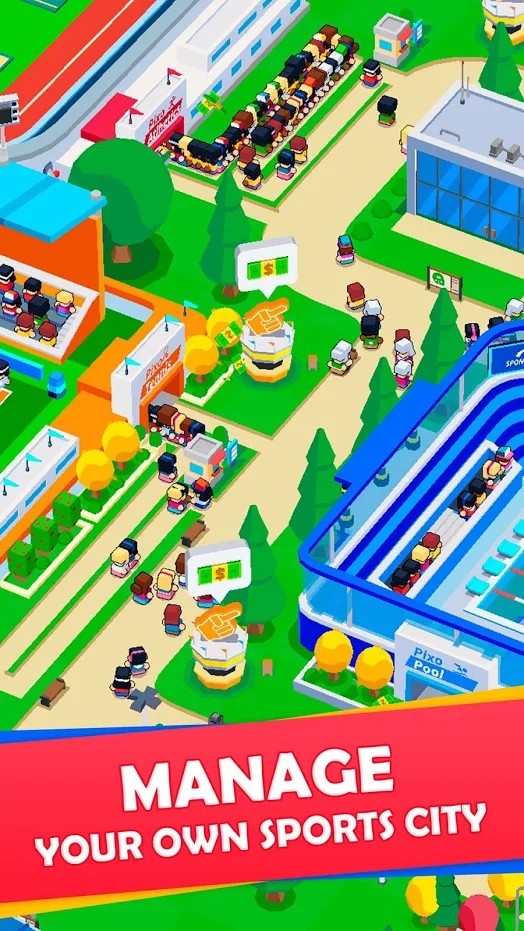 空闲体育城大亨是一款融合了真实模拟建造与愉快经营玩法的游戏,在游戏中,你将扮演一位体育城的经营者,目标是通过合理的规划和经营,打造出一座享誉全球的体育王国。从它以其Q版可爱的画面风格和深度的经营策略,为玩家带来了一个充满挑战与乐趣的体育世界。