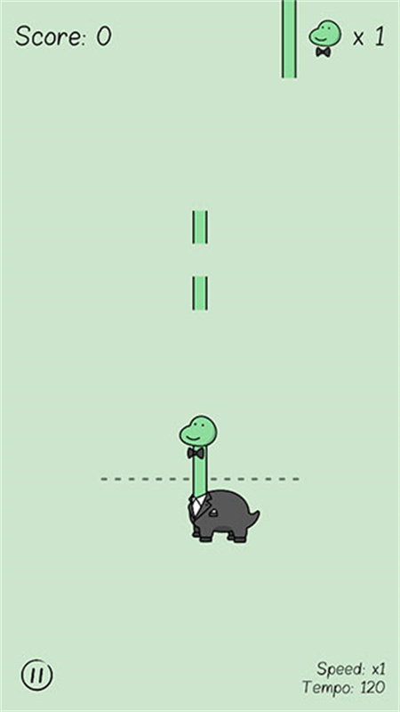 4、然后滑动屏幕就可以开始游戏了,左右移动恐龙接住空中随机掉落的脖子,增加自己的身高!