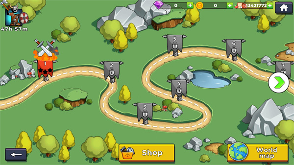 通关后,返回主界面或地图选择界面,点击下一关”或下一地图”按钮即可继续冒险。记得常回主菜单查看解锁条件,规划你的进阶路线!