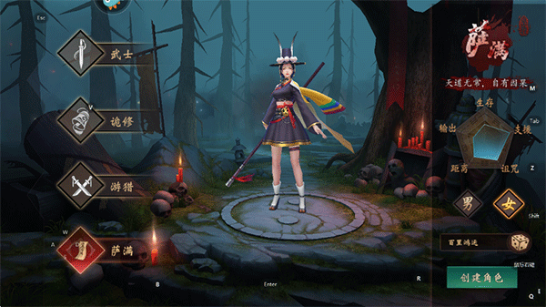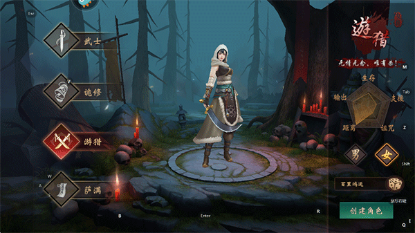 2、游戏中包含四大职业,武士、诡修、游猎、萨满,玩家可选择其一并输入ID以创建角色;