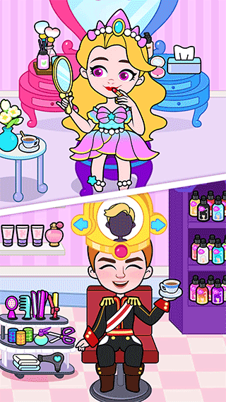 为公主和她的朋友们设计时髦发型、搭配精致妆容,打造个性造型,并拍下美美的合影留念。